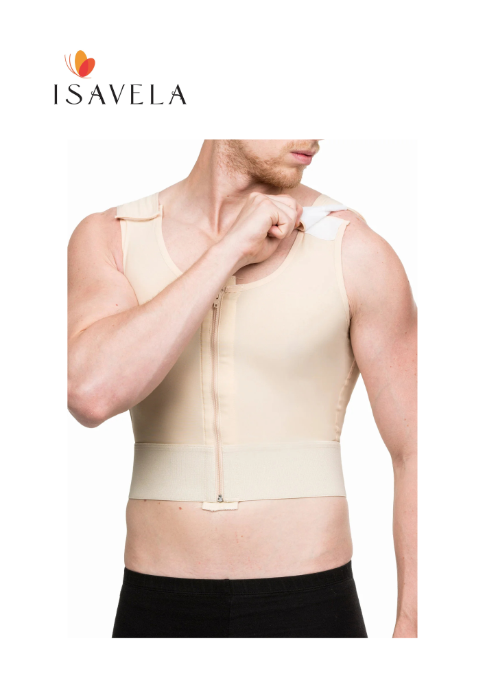 صدريّة قصيرة مزوّدة بسحاب أمامي وحشوة خفيفة، مع أكتاف قابلة للتعديل باستخدام لاصق الفيلكرو لضمان ثبات وملاءمة مريحة. توفر ضغطًا مركّزًا على منطقة الصدر وأعلى الظهر، مما يجعلها مثالية لفترة التعافي الأولى (الأسبوع 1–2 بعد العملية). مصنوعة من قماش خفيف ومرن يسمح بتهوية جيدة لراحة أكبر، تعزيز عملية الشفاء، وتقليل السوائل.